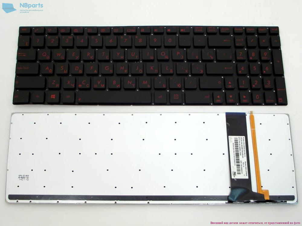 Клавиатура для ноутбука ASUS N56 N76 N550, чёрная, с красной подсветкой, маленький Enter, RU