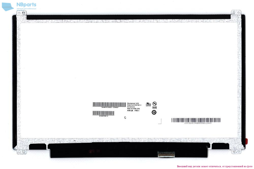 Матрица B133XTN01.3, 1366x768 HD, eDP1.2, 30 pin, 1 Lane, TN, матовая, уши верх - низ